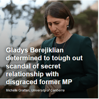 Is this the world we live in ? The Liberal Party Leader and Premier of NSW continues a relationship with a corrupt ex-politician and when it comes to light, she then just says: “Oh – I stuffed up.” How dangerously close is that to Donald Trump’s world ? Is that what we want for our country ?